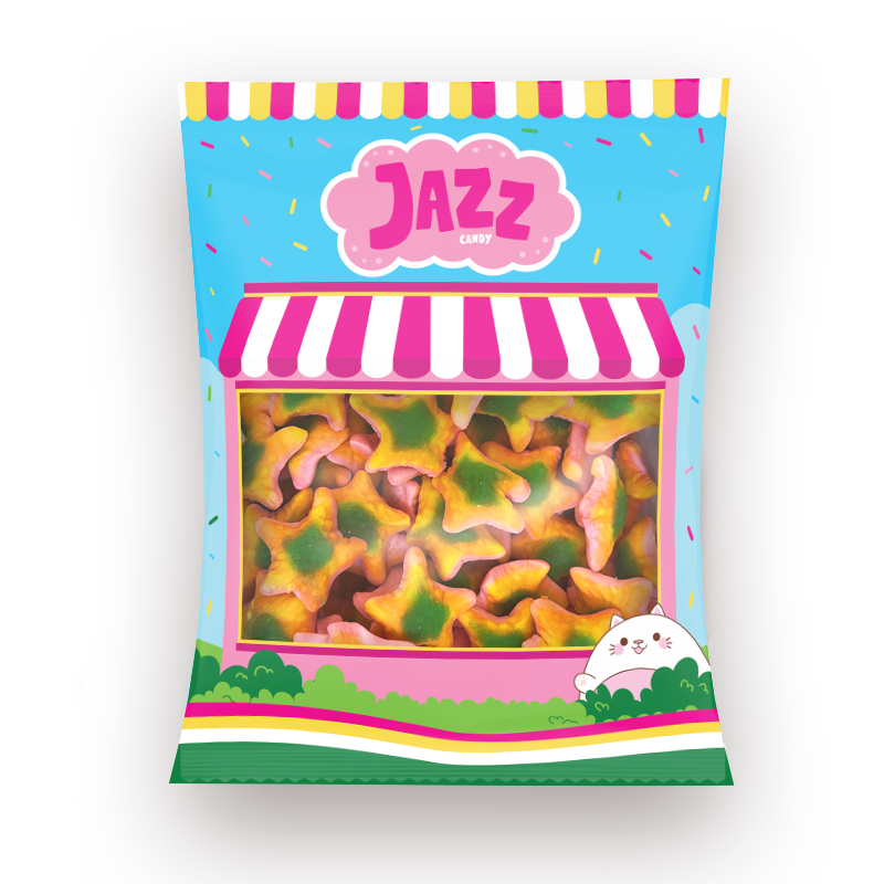 Glukosesirup, Zucker, Wasser, Halal-Rindergelatine, modifizierte Kartoffelstärke, Säuerungsmittel: E330, E270, künstliches Aroma, Farben: Rettich Extrakt, E110, E102, E133,Beschichtung pflanzliches Öl (palm), E901, E903.
